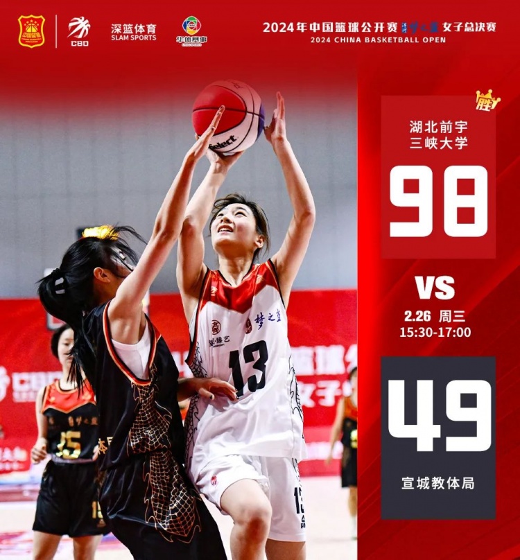 上半場,湖北前宇三峽大學(xué)11號(hào)劉欣怡、2號(hào)張歡分別命中兩分,幫助球隊(duì)取得領(lǐng)先。宣城教體局6號(hào)張紫涵扳回兩分后,湖北前宇三峽大學(xué)在技術(shù)和經(jīng)驗(yàn)上的優(yōu)勢(shì)逐漸顯露,打出一波8-0的得分潮。半場結(jié)束,湖北前宇三峽大學(xué)53-21領(lǐng)先宣城教體局。易邊再戰(zhàn),宣城教體局雖然頑強(qiáng)拼搏,但年輕小將在實(shí)力上和對(duì)手還是存在著差距,將分差越拉越大。最終,湖北前宇三峽大學(xué)98-49戰(zhàn)勝宣城教體局。