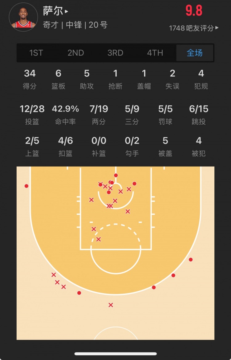 菜鳥丨榜眼薩爾轟34+6+5 熱火韋爾獻19+11 奇才喬治19分7板6助4斷