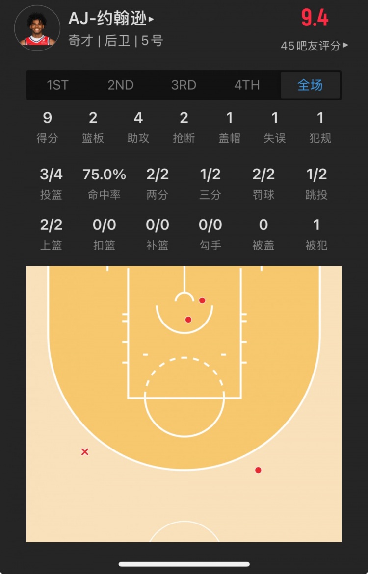 奇才23號秀 AJ-約翰遜 登場17.8分鐘