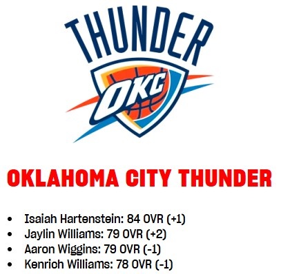 雷霆球員2K能力值更新:哈滕+1至84 杰林威+2 阿隆-維金斯&肯威-1