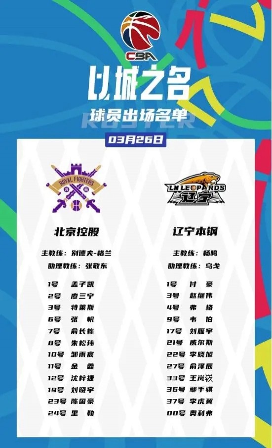 - 北控VS遼寧大名單:廖三寧趙繼偉領(lǐng)銜 弗格在列 韓德君張鎮(zhèn)麟缺陣
