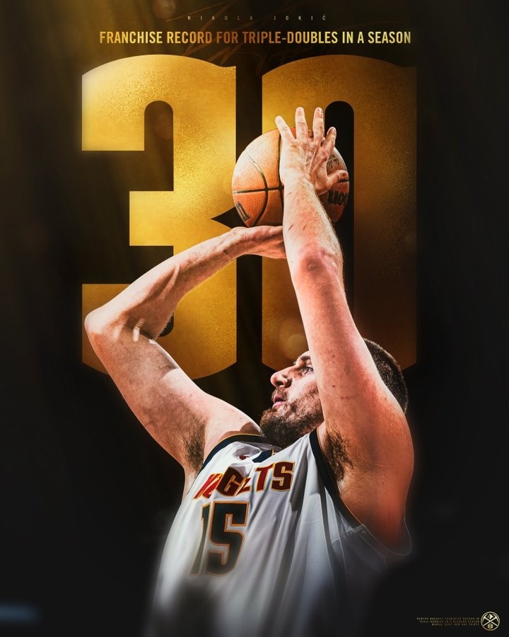 打破自己保持的隊史紀錄!掘金官方曬海報:約基奇單季30次三雙!