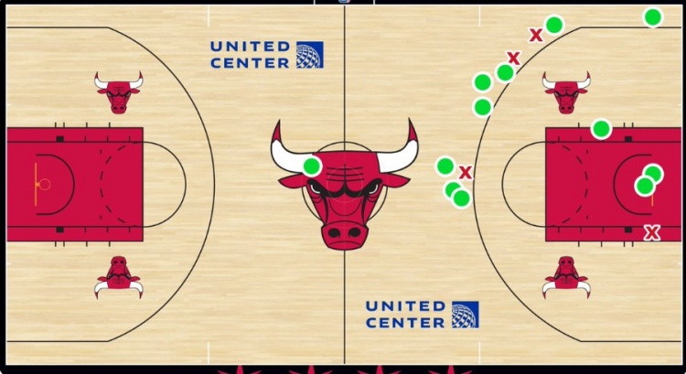 - 基迪貢獻(xiàn)14.17米超遠(yuǎn)三分絕殺 創(chuàng)公牛隊史絕殺球距離新高