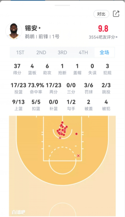 夸張!錫安和他的模板投籃熱圖對比:一個全在籃下 一個覆蓋半場