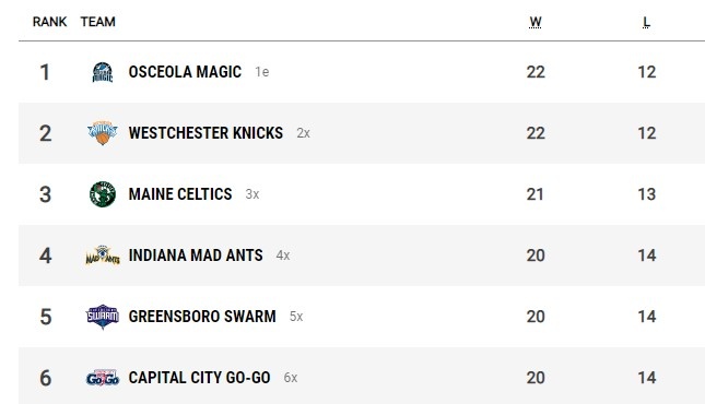 G聯(lián)賽常規(guī)賽東西部前六晉級(jí)季后賽,東西部第1、第2名直接晉級(jí)分區(qū)半決賽。常規(guī)賽排名東西部前六的球隊(duì)如下: