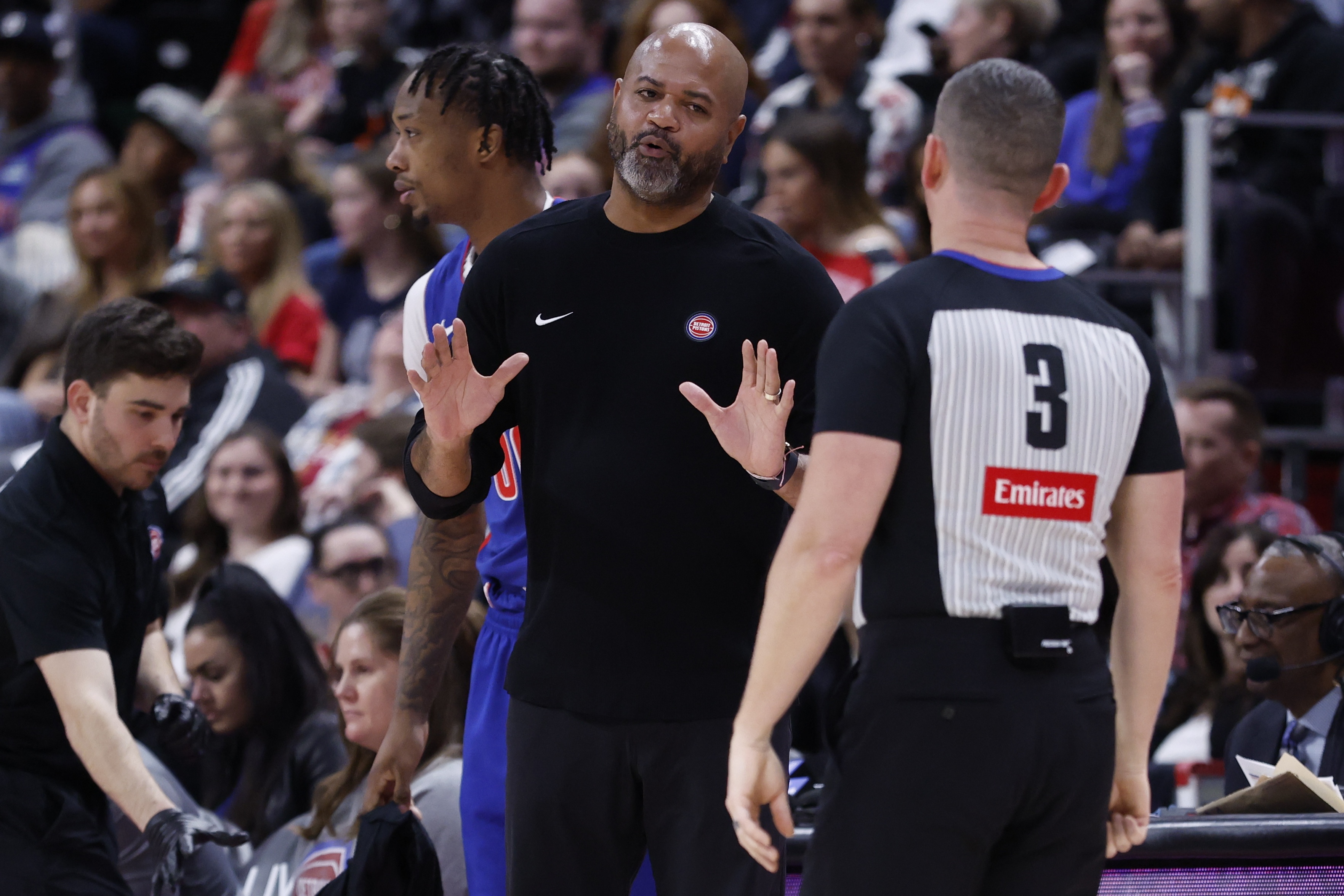 本場(chǎng)比賽,兩隊(duì)發(fā)生大沖突,5名球員,2名教練被驅(qū)逐出場(chǎng)。賽后,被驅(qū)逐的活塞主教練比克斯塔夫談到?jīng)_突時(shí)表示,普里吉奧尼(被驅(qū)逐的森林狼助教)說(shuō)了一些讓他無(wú)法接受的話,才導(dǎo)致他倆被驅(qū)逐出場(chǎng):“我不允許有人對(duì)我的隊(duì)員說(shuō)一些挑釁的話,人要對(duì)自己的言行負(fù)責(zé)。”他承認(rèn)沖突確實(shí)超出了可控范圍內(nèi),但很高興隊(duì)員們互相支持。