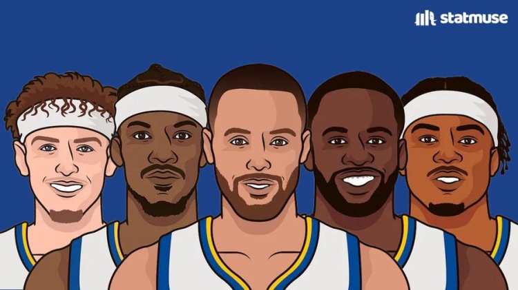 據(jù)統(tǒng)計(jì),勇士當(dāng)派出庫里、波杰姆斯基、穆迪、巴特勒、追夢(mèng)的首發(fā)陣容時(shí),戰(zhàn)績(jī)11勝0負(fù)。