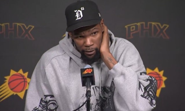 3月5日訊 NBA常規(guī)賽,太陽119-117險勝快船,杜蘭特賽后接受了媒體采訪。