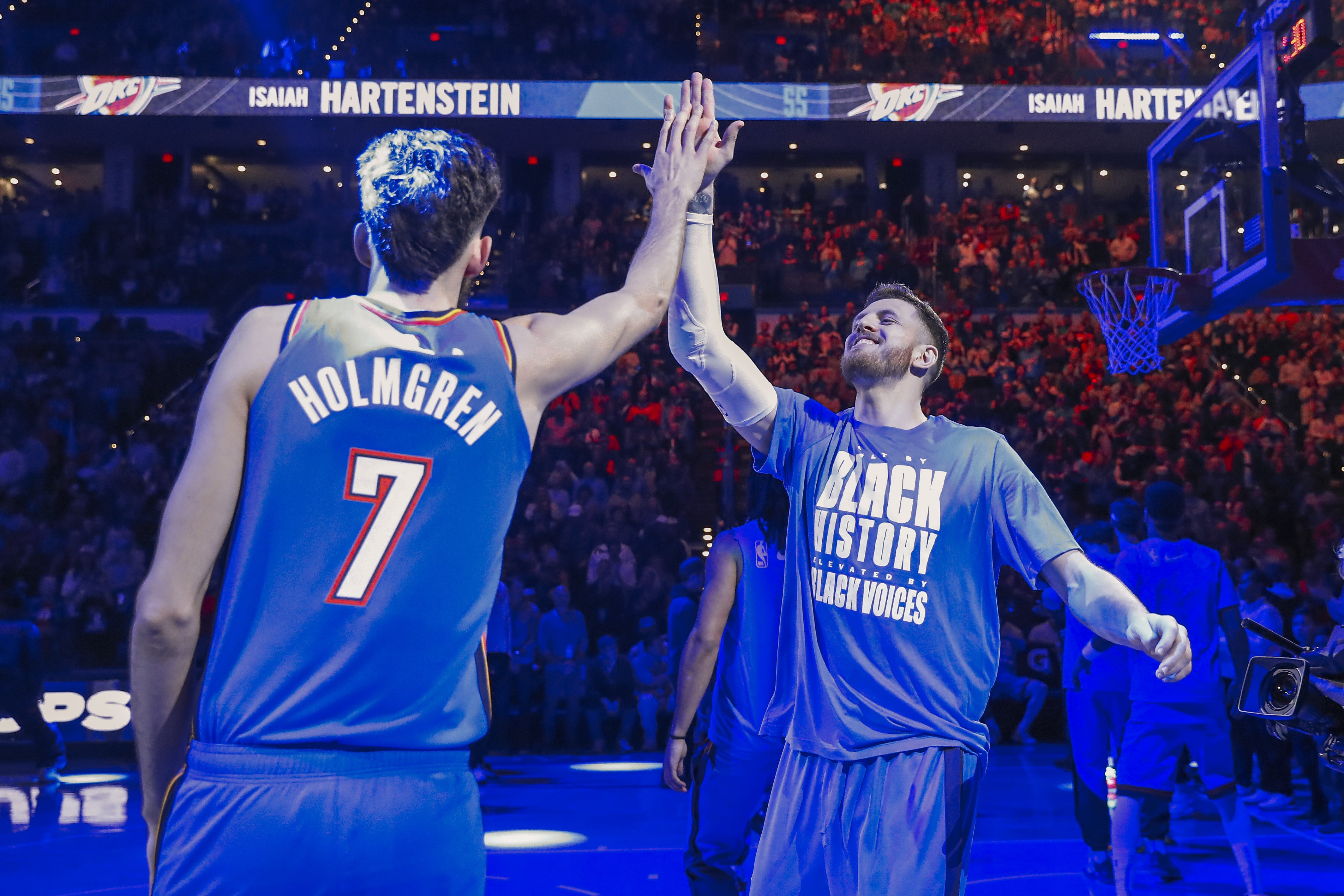 Tim MacMahon:霍姆格倫和哈爾滕施泰因在雷霆的季后賽計(jì)劃中占據(jù)重要地位,但尚不確定雷霆是否會(huì)同時(shí)使用這兩位大個(gè)子作為首發(fā)。這可能是一個(gè)根據(jù)對(duì)手情況逐輪調(diào)整的決定,甚至可能在系列賽期間進(jìn)行調(diào)整?;裟犯駛惡凸栯┨┮蛲瑫r(shí)出場(chǎng)的97分鐘里,雷霆凈勝對(duì)手20分。雖然樣本量很小,但這對(duì)組合的防守效率(116.5)卻出奇地差。