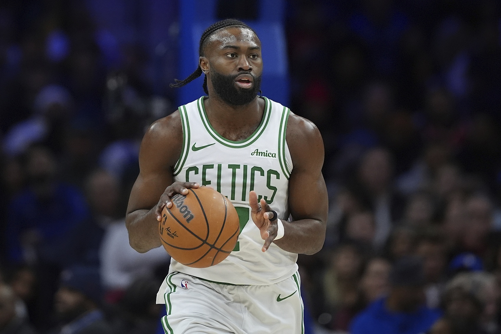 綠軍球星杰倫-布朗本場(chǎng)比賽外線三分手感不佳4投0中,全場(chǎng)出戰(zhàn)40分鐘,合計(jì)23投7中,罰球6中4,拿到18分8籃板8助攻1搶斷,正負(fù)值+15。