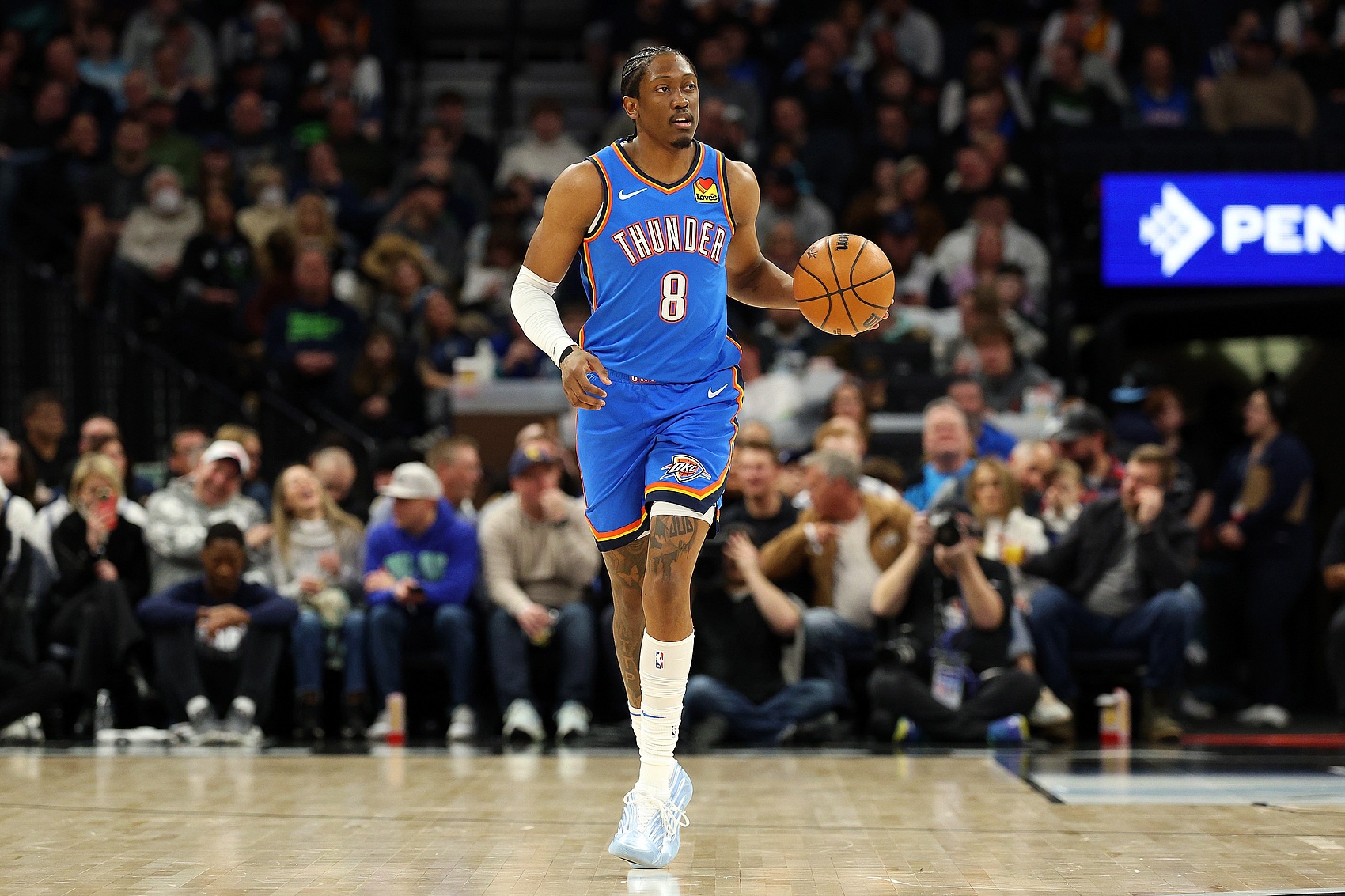 令人鼓舞的是,雷霆似乎可以通過確?;裟犯駛愒趤啔v山大休息時(shí)與杰倫-威廉姆斯一起上場(chǎng)來避免重蹈覆轍。本賽季,雷霆在這種陣容配置下的進(jìn)攻效率排名聯(lián)盟前2%,這為他們?cè)诩竞筚愔猩嫦聛硖峁┝讼M?。只要杰?威廉姆斯不獨(dú)自上場(chǎng),而是有首發(fā)級(jí)別的援手,他應(yīng)該沒問題。如果這些時(shí)段表現(xiàn)良好,雷霆可能會(huì)變得所向披靡。