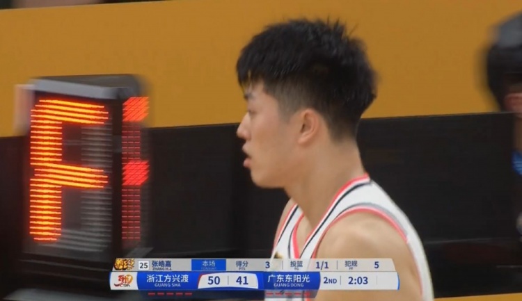 廣東球員張皓嘉僅出場10分鐘就累計5次個人犯規(guī),三分1中1拿到3分2籃板,正負值-18。