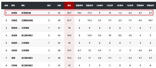 張明珠在俱樂部杯場(chǎng)均得到24.7分7.3籃板1.0助攻1.0蓋帽,投籃命中率59.6%,三分命中率57.1%,罰球命中率72.7%。