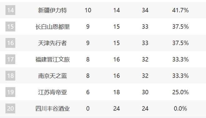 14-20分別是新疆、吉林、天津、福建、同曦、江蘇和四川。新疆這輪擊敗了廣東,目前防守的調整已經越來越好了,進攻端的發(fā)揮也不錯,他們依然有希望直指季后賽。但吉林輸給山西,戰(zhàn)績持續(xù)下滑。天津則保持了兩連勝,他們有點復蘇的意思了。至于福建和江蘇都是連敗,同曦這輪輸給廣廈,這三支球隊好像距離季后賽漸行漸遠了。四川現(xiàn)在已經24連敗了。