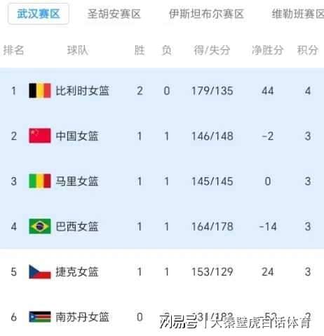 15分慘敗比利時女籃之后,武漢賽區(qū)的最新排名也已經出爐。