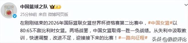 北京時(shí)間3月12日,女籃世預(yù)賽,中國女籃65-80不敵比利時(shí)女籃,戰(zhàn)績?yōu)?勝1負(fù)。