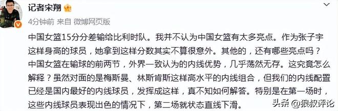- 中國(guó)女籃15負(fù)完敗比利時(shí)引熱議 記者吐槽內(nèi)線優(yōu)勢(shì),幾乎蕩然無存