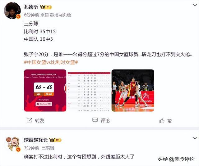 中國(guó)女籃15分分差輸給比利時(shí)隊(duì)。我并不認(rèn)為中國(guó)女籃有太多亮點(diǎn)。作為張子宇這樣身高的球員,她拿到這樣分?jǐn)?shù)其實(shí)不算很意外。其他的,還有哪些亮點(diǎn)嗎?中國(guó)女籃在輸球的前兩節(jié),外界一致認(rèn)為的內(nèi)線優(yōu)勢(shì),幾乎蕩然無存。這究竟怎么解釋?