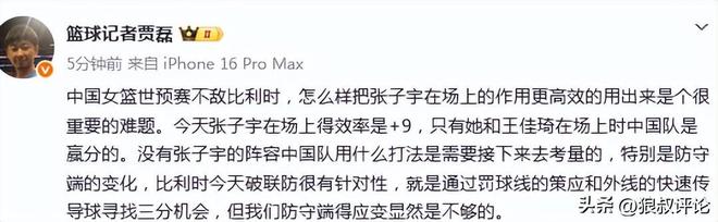 籃球記者賈磊發(fā)文點(diǎn)評(píng):