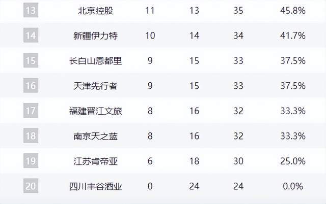 吉林連敗不止,狀態(tài)持續(xù)下滑;天津兩連勝,悄然復(fù)蘇;福建、江蘇深陷泥潭,連敗不止;同曦敗給廣廈,徹底失去爭八希望。