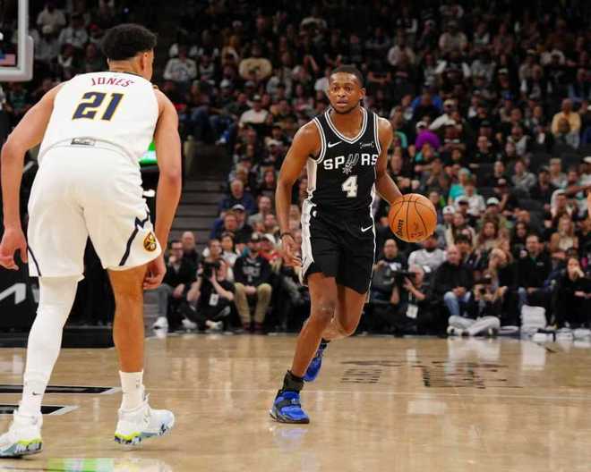 馬刺過去5場收獲5連勝,掘金上一場主場129-93大勝火箭,本賽季首次交鋒馬刺客場139-136險(xiǎn)勝掘金。本場掘金缺少沃特森與戈登,馬刺缺少加西亞與文班亞馬。首節(jié)開局馬刺7-2領(lǐng)先,布勞恩與??怂箤?duì)攻一記三分,馬刺內(nèi)外開花擴(kuò)大13-7領(lǐng)先。掘金連得5分縮小差距,馬刺一波6-0攻勢擴(kuò)大19-12領(lǐng)先,約基奇率隊(duì)連追6分,雙方之后纏斗至馬刺23-22領(lǐng)先。馬刺一波14-3攻勢拉開比分,首節(jié)結(jié)束馬刺37-25領(lǐng)先掘金。首節(jié)掘金僅24中7,其中三分14中1低迷,約基奇10中4得到12+4+0助攻;馬刺24中12,其中三分12中5,瓦塞爾9分與福克斯5分5助攻。
