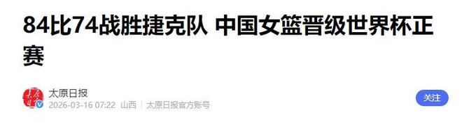 3月15日晚,中國(guó)女籃在世預(yù)賽第四輪主場(chǎng)迎戰(zhàn)捷克隊(duì),經(jīng)過(guò)四節(jié)激烈對(duì)抗,最終以84-74戰(zhàn)勝對(duì)手,拿到本場(chǎng)比賽勝利的同時(shí),也成功鎖定2026年柏林世界杯的參賽資格。
