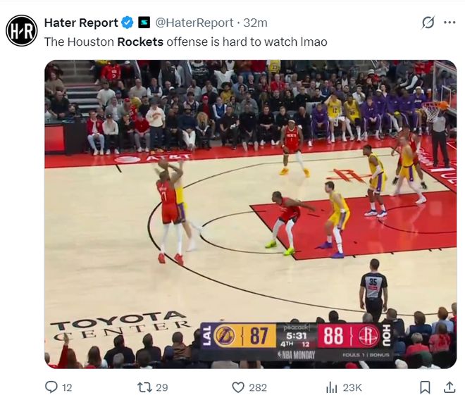 美媒:火箭第四節(jié)VS湖人的比賽是我見(jiàn)過(guò)最糟糕的一場(chǎng)。