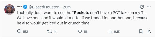 美媒:在交易截止前火箭依舊沒(méi)有確定球權(quán)的掌控者,這件事我認(rèn)為毫無(wú)道理。休媒回應(yīng):我們?cè)趫?chǎng)上有一個(gè)控球手,但關(guān)鍵時(shí)刻我們沒(méi)有把球權(quán)給他。(謝潑德)