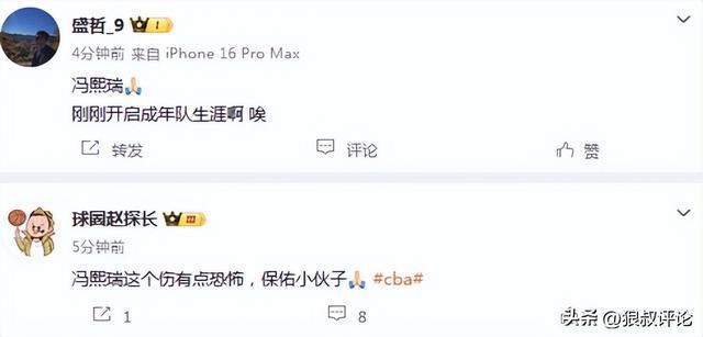 不少媒體人送出祝福:馮熙瑞這個傷有點恐怖,保佑小伙子。