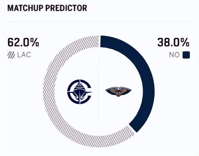 賽前,美媒ESPN對(duì)本場(chǎng)比賽進(jìn)行了勝率預(yù)測(cè),快船隊(duì)勝率依舊高達(dá)62.0% ,鵜鶘隊(duì)勝率則僅有38.0% ,差距明顯。