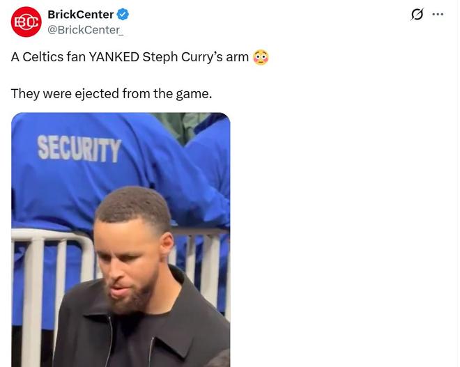 - 一名凱爾特人主場(chǎng)球迷猛拽庫(kù)里胳膊被驅(qū)逐,后者滿臉不悅