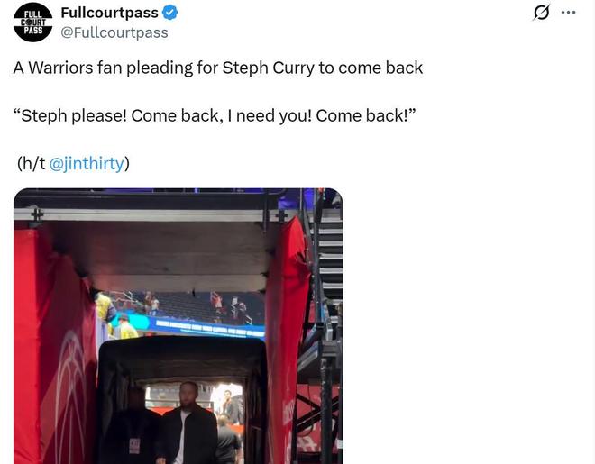 加上本場(chǎng)比賽前,有狂熱勇士球迷對(duì)著庫(kù)里高呼:“求你了,快回來吧!我們需要你!”