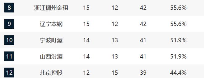 8-11分別是浙江、遼寧、寧波和山西。浙江這輪輸給同曦,算是被爆冷了,也沒有辦法內(nèi)線太劣勢了。遼寧已經(jīng)六連勝了,排名持續(xù)提升,烏戈完全調(diào)動了球隊的攻守體系。寧波和山西這輪都贏球了,但目前山西的戰(zhàn)績起伏還是太大了。