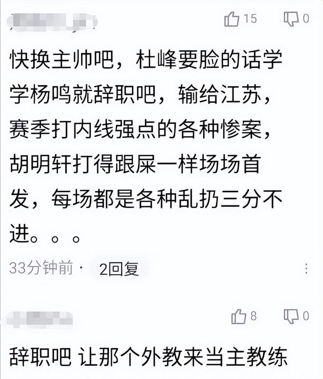 這份長長的任職情況和活動時間線一出來,再度引爆了球迷評論區(qū),評論區(qū)有廣東球迷呼吁球隊快點換主帥吧,并且喊話杜鋒,要臉的話就學(xué)楊鳴致辭,讓那個外教來當(dāng)主教練。