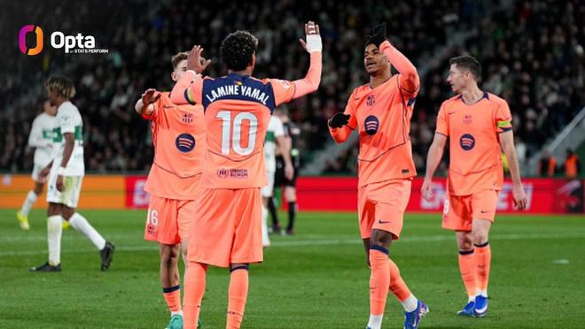 西甲第22輪,巴塞羅那客場對陣埃爾切,下半場拉什福德打入個人本賽季第10球,至此,巴薩本賽季已有6名球員進球上雙,五大聯(lián)賽沒有其他球隊超過3人進球上雙。
