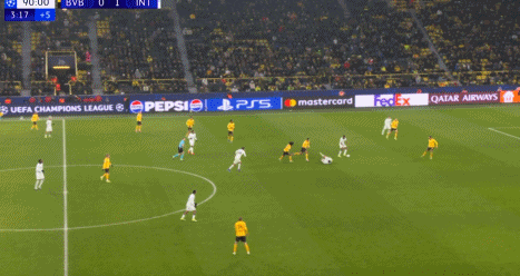 比賽開(kāi)打之后第9分鐘,多特蒙德創(chuàng)造出了一次極具威脅的射門機(jī)會(huì),吉拉西門前接到隊(duì)友似傳似射的傳球,獲得了直接和門將一對(duì)一的機(jī)會(huì),可惜打門綿軟無(wú)力被索默輕松將球沒(méi)收,錯(cuò)失了取得夢(mèng)幻開(kāi)局的絕佳機(jī)會(huì),逃過(guò)一劫的國(guó)米,5分鐘之后通過(guò)反擊給了迪馬爾科禁區(qū)內(nèi)起腳的空間,后者的大力轟門被多特門將穩(wěn)穩(wěn)抱在懷中。
