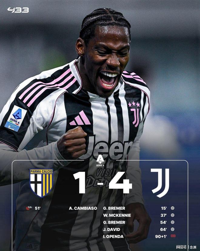 - 2026年02月02日 近5輪4勝!尤文4-1帕爾馬暫升第4 戴維傳射布雷默雙響麥肯尼側勾