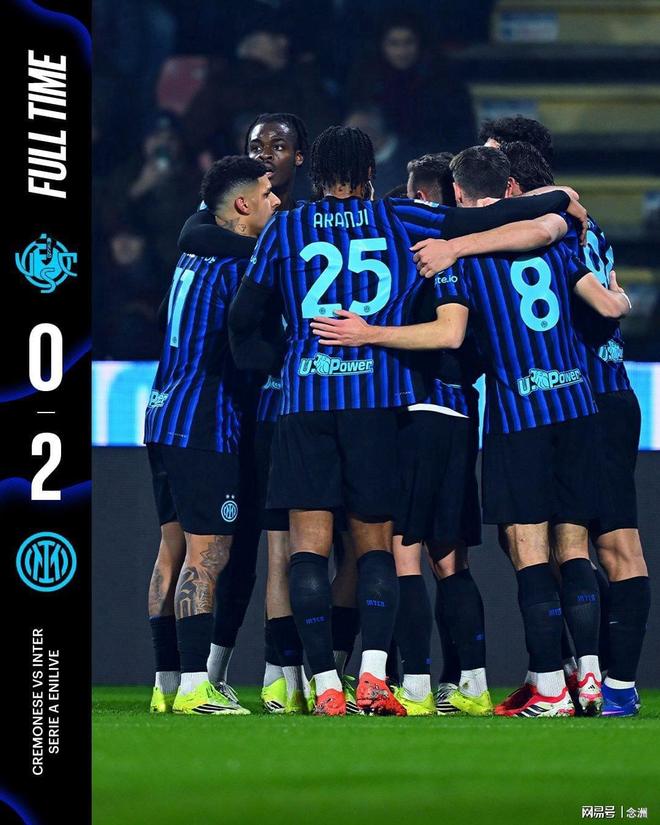 意甲第23輪,國米客場2-0戰(zhàn)勝克雷莫內塞,各項賽事三連勝,先賽一場8分領跑。迪馬爾科助攻勞塔羅頭球破門,杰林斯基世界波。