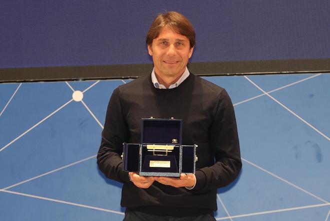 孔蒂在科維恰諾禮堂表示:“能夠獲得這個獎項始終是一項莫大的榮譽,因為它是同行投票的結果,是那些深知教練職業(yè)甘苦的人投出的。我要與那些在上賽季書寫壯舉的球員們共享此獎,也要與教練組、所有在那不勒斯工作的人以及我的俱樂部共享。”