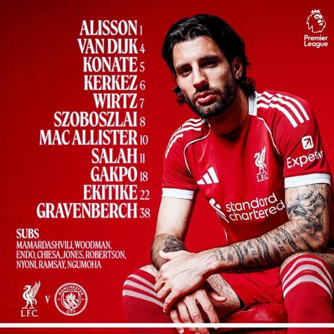 利物浦戰(zhàn)曼城首發(fā):