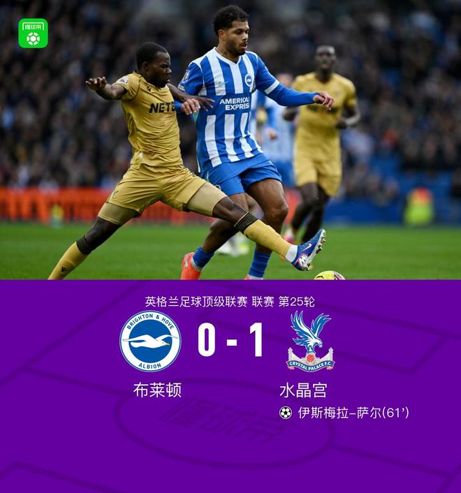 - 水晶宮1-0客勝布萊頓取近13場首勝,薩爾建功,拉森造險(xiǎn)