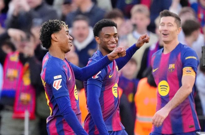這場比賽開場后馬略卡接連獲得好機會,但比爾希利和穆里奇都沒有抓住機會。逃過一劫的巴薩在第29分鐘率先進球。萊萬多夫斯基門前冷靜射門得手??ㄋ_多有擴大比分的機會,只可惜他的射門擊中門框彈出。亞馬爾在第61分鐘轟出一腳無解世界波,擴大比分。最后時刻替補上場的18歲小將貝爾納爾也進球了,殺死比賽。最終的比分定格為3-0,巴薩完勝馬略卡。