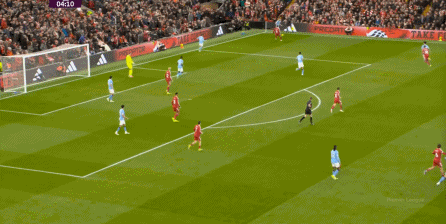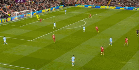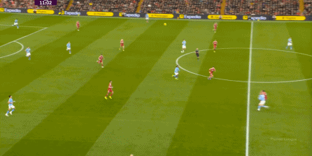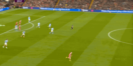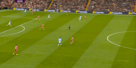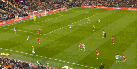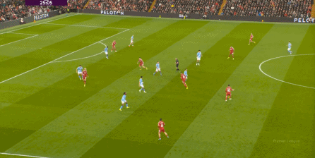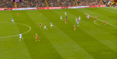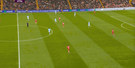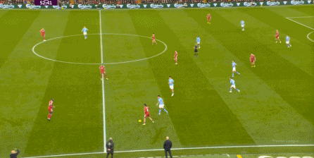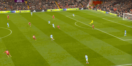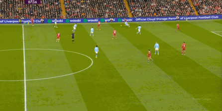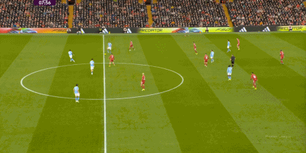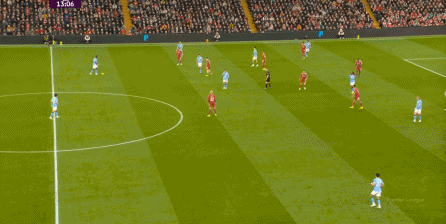 于是,在真的通過進(jìn)攻畫面調(diào)動起場上的情緒之后,利物浦開始能將壓力施加到曼城的后衛(wèi)身上了: