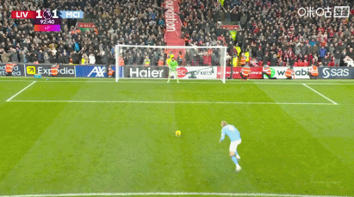 哈蘭德是迅速射門,讓阿利松無計可施,就此,曼城2-1利物浦。