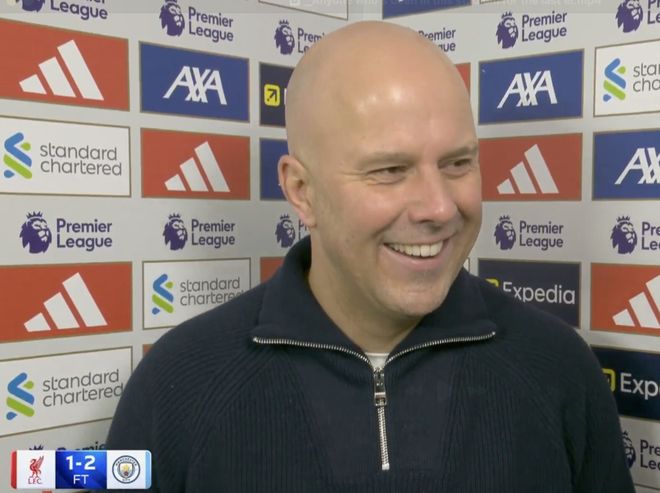 更令利物浦球迷不滿的是,自家的主帥斯洛特似乎并沒有因為被逆轉(zhuǎn)輸球而太過失望,賽后這位荷蘭名帥竟然咧嘴大笑接受采訪。