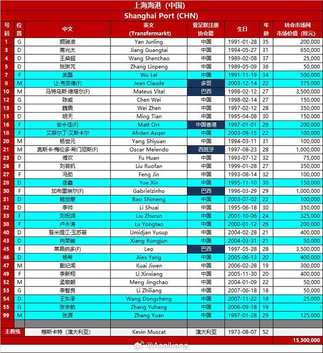 2025-26賽季亞冠精英聯(lián)賽報(bào)名名單(第三注冊(cè)窗口)——上海海港