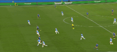第18分鐘,貝爾納斯科尼橫敲,扎萊夫斯基面對(duì)空門踢飛