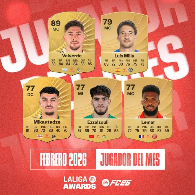 西甲官方公布了2月份最佳球員候選名單,巴爾韋德、勒馬爾、阿布德等人在列。