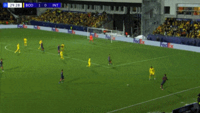 第20分鐘,霍格腳后跟輕巧一磕,菲特冷靜抽射得手,博德閃耀1-0領(lǐng)先。第30分鐘,巴雷拉傳中制造混亂,埃斯波西托轉(zhuǎn)身抽射扳平比分,國米看到希望。