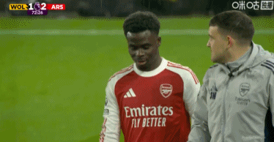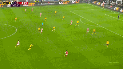 第5分鐘,薩卡禁區(qū)插上頭球破門,阿森納1-0領(lǐng)先狼隊(duì)